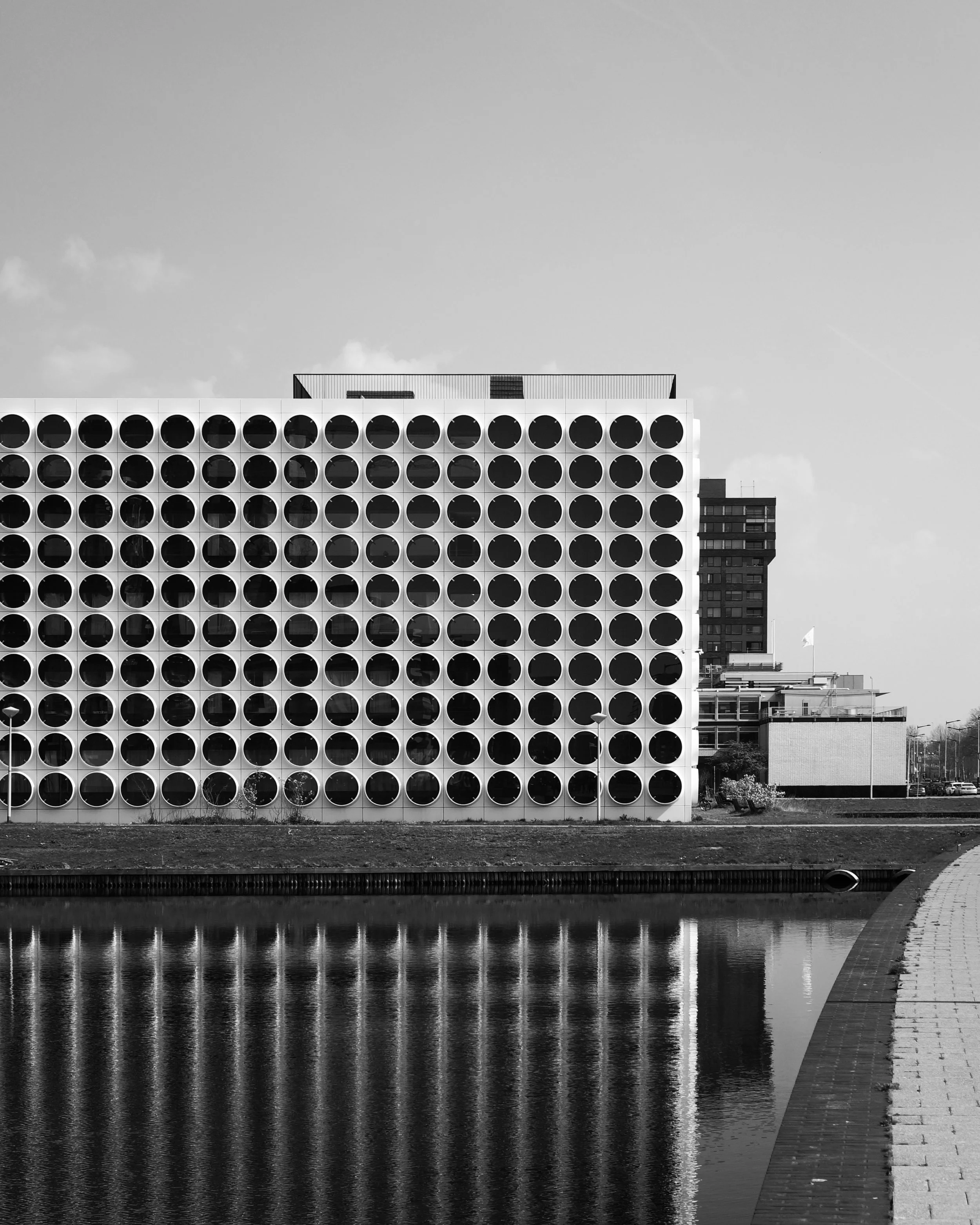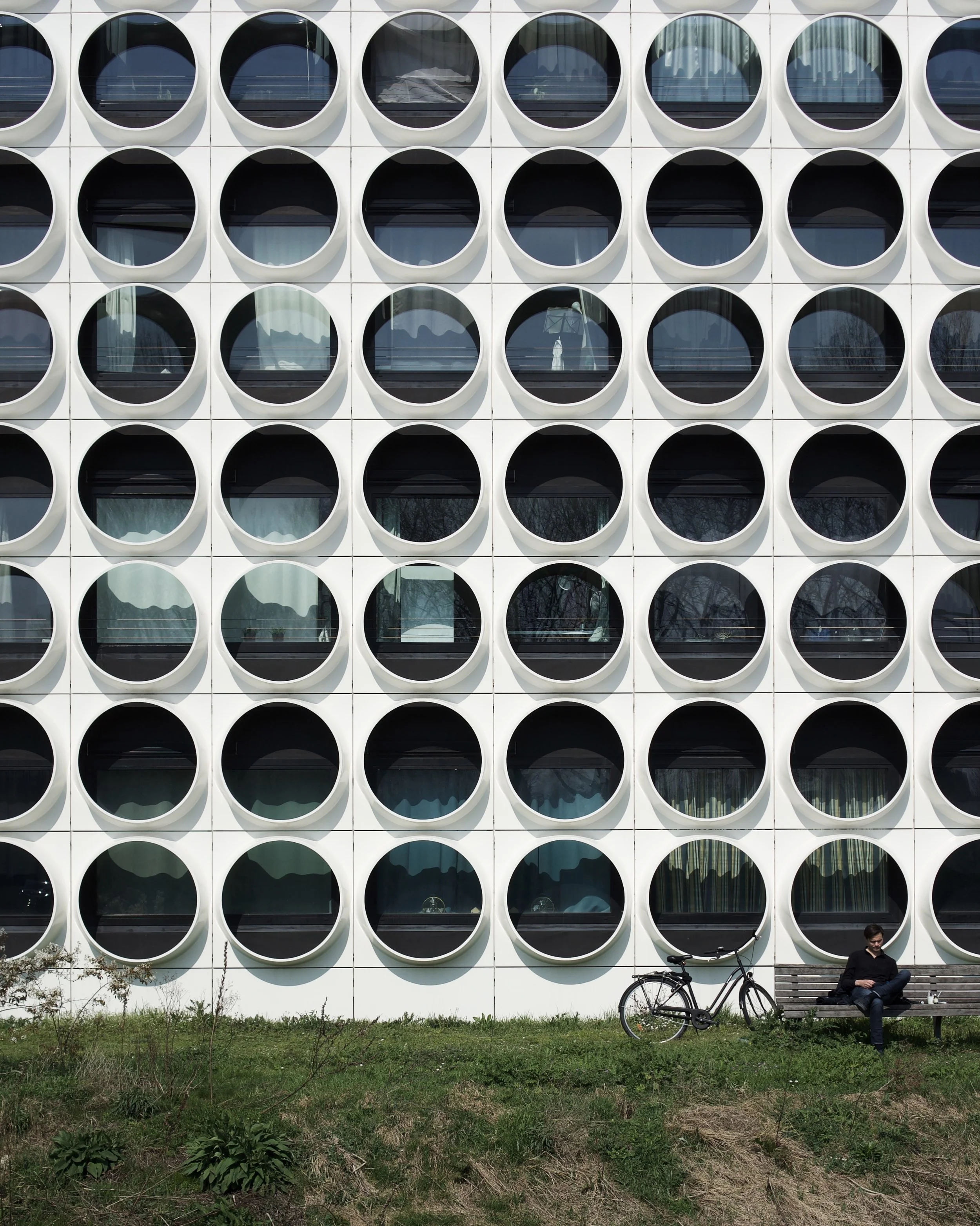 After a walk through the picturesque Beatrixpark I arrived at an iconic student housing building; Ravel Residence. The project was developed by OZ Architects and houses 800 students within a homogeneous modular facade. The circular windows create a unique and contemporary identity that reflects within the surrounding waterways - there was even a full sized basketball court cage on the rooftop for added amenity.
